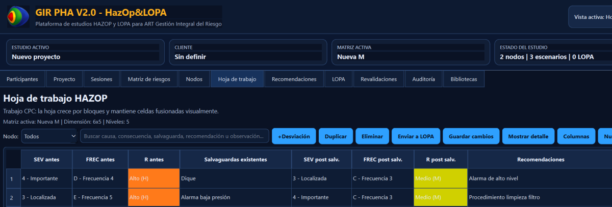 - GIR PHA: herramienta propia y funcional desarrollada por ART GIR S.A.S. para la ejecución de estudios HAZOP.